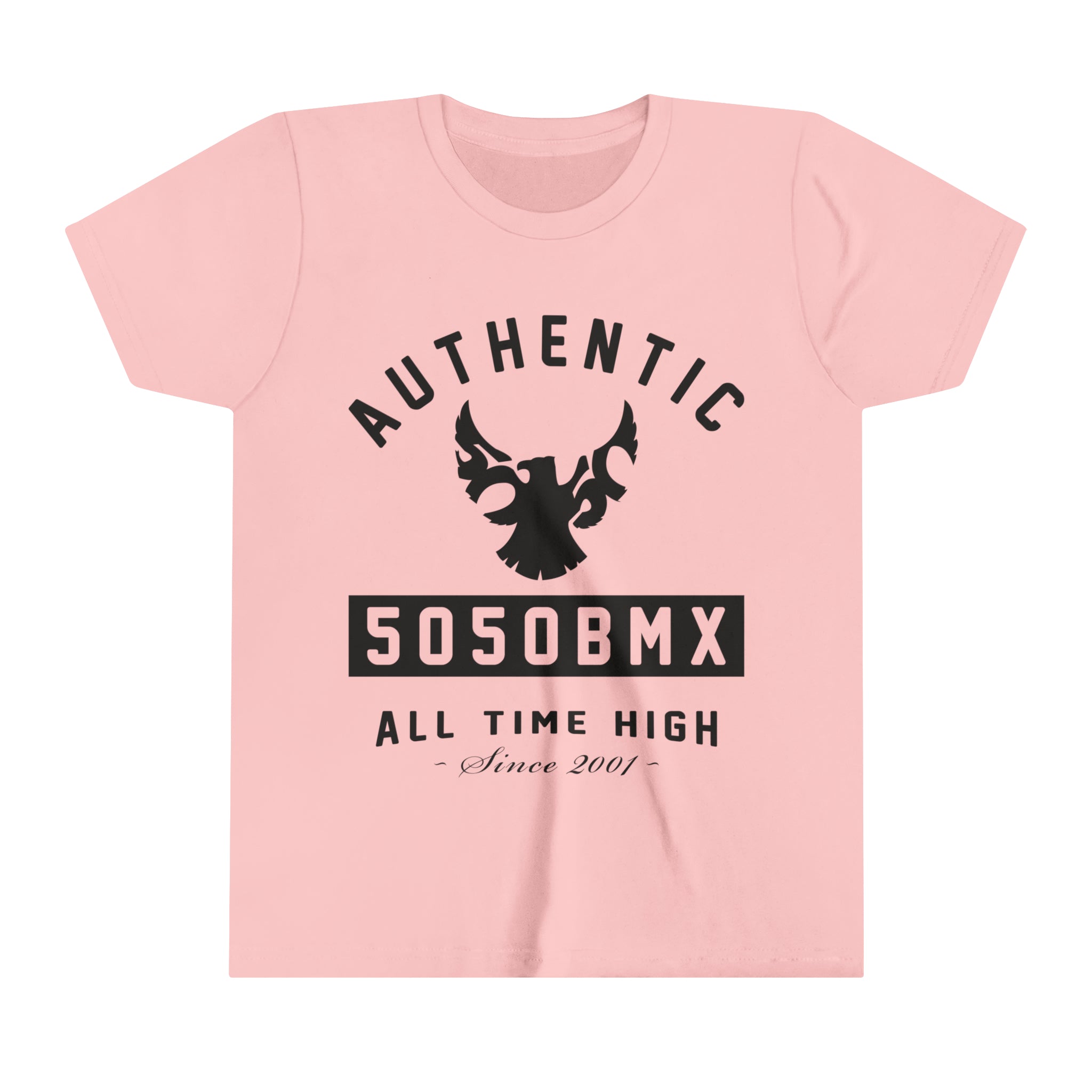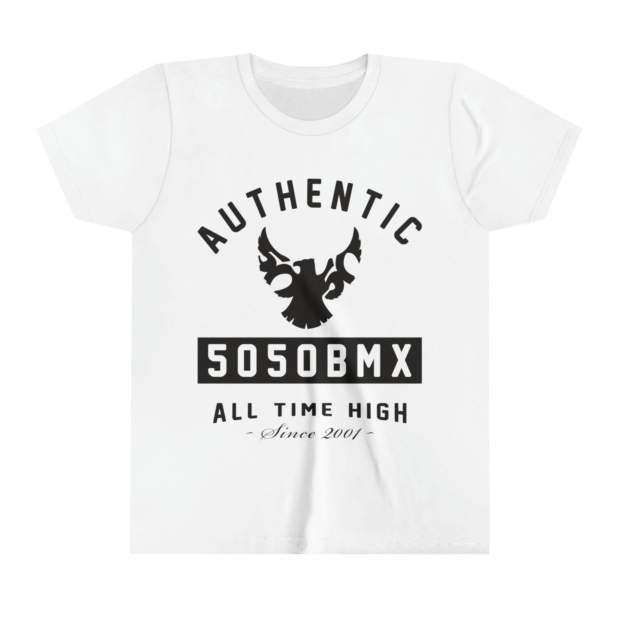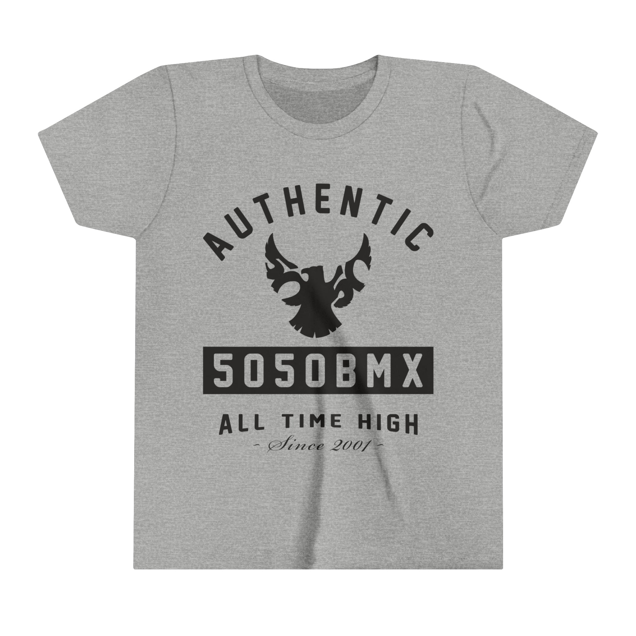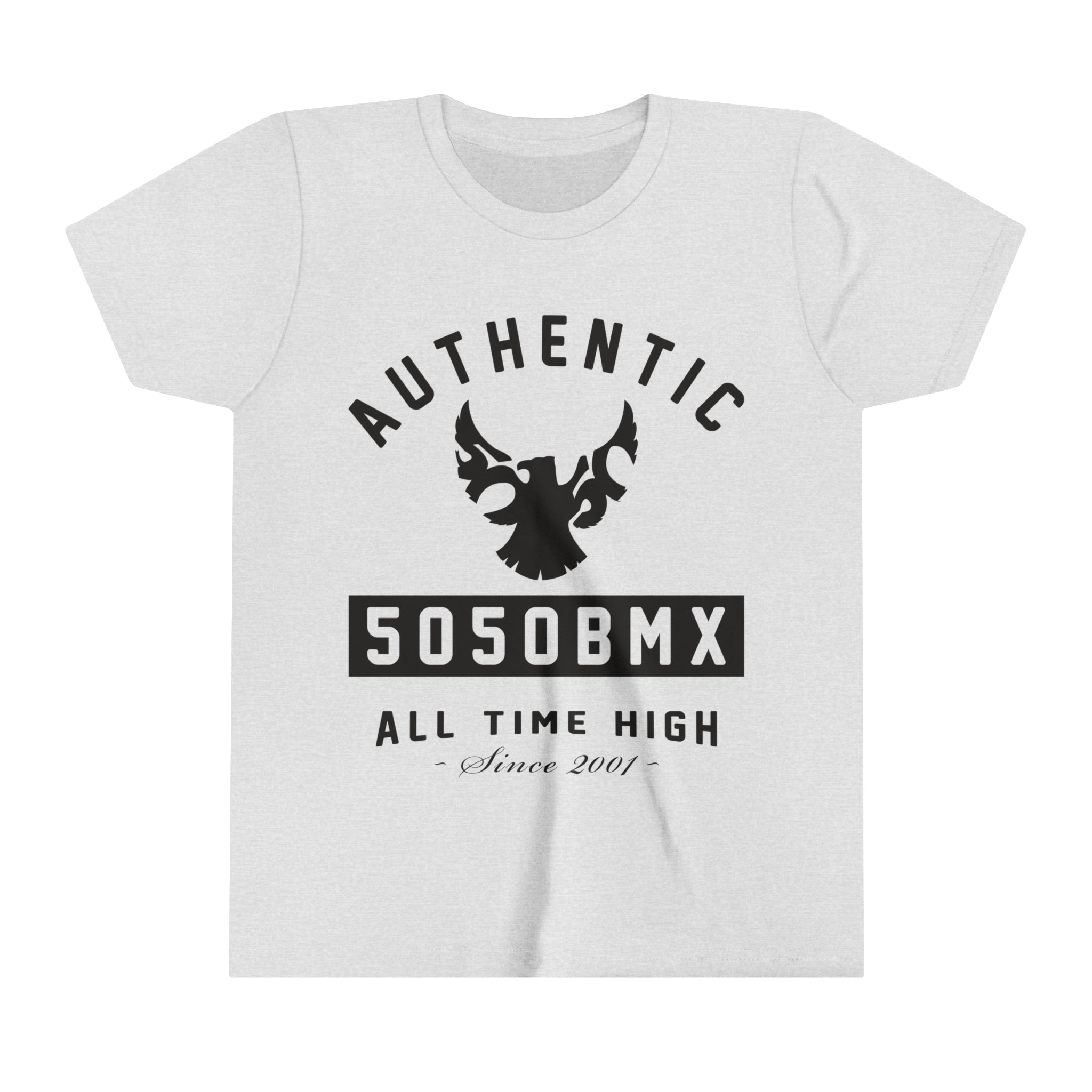 Introducing the 5050bmx.com All Time High - Youth Short Sleeve Tee – the raddest option for adventure-seekers. It's made of comfy 100% Airlume combed and ring-spun cotton. Tailored to perfection, including side-seamed stitching, and shoulder taping, this tee not only looks good but performs well. Sustainably crafted in sizes S to XL – upgrade your wardrobe and take your adventuring to a new level! Let's get wild!