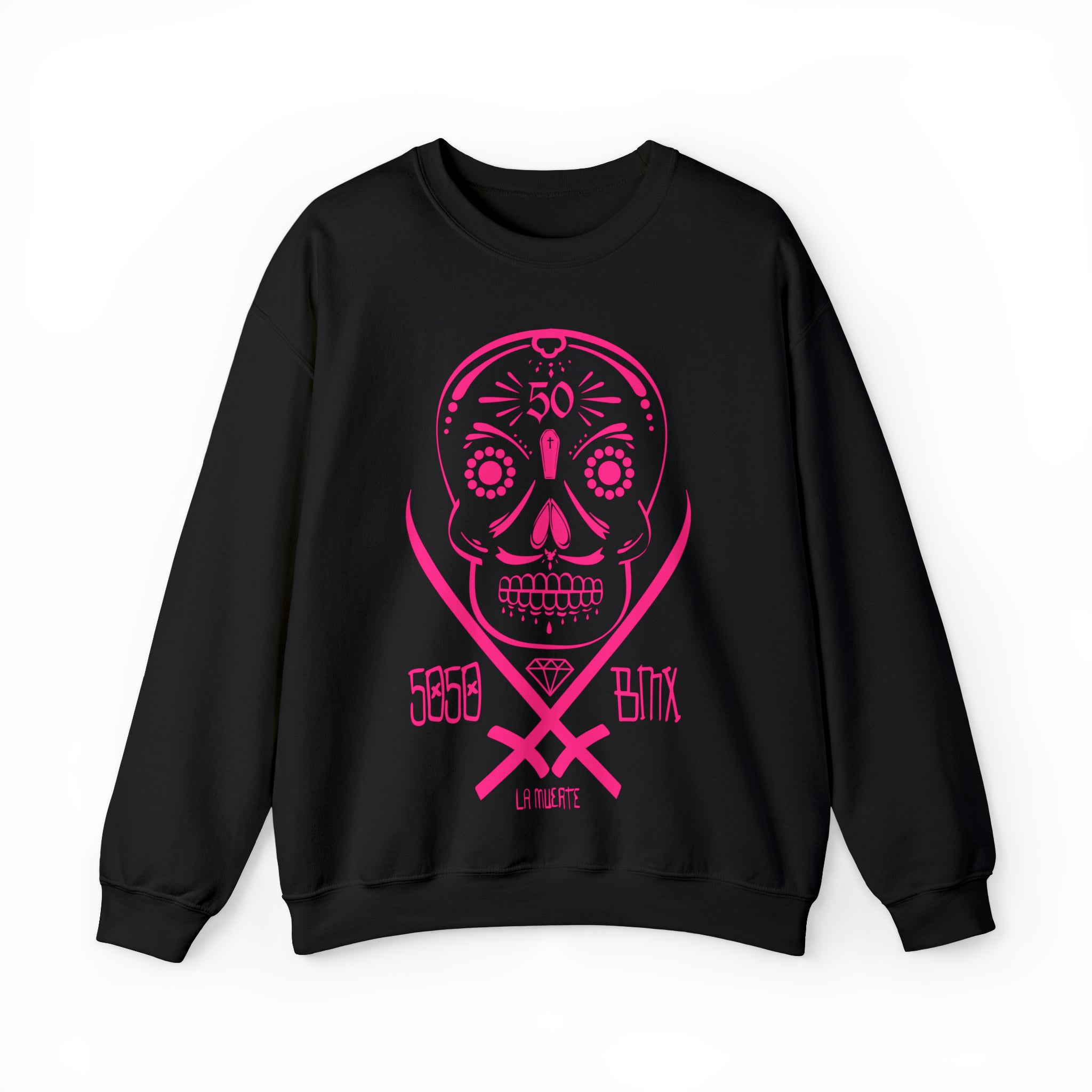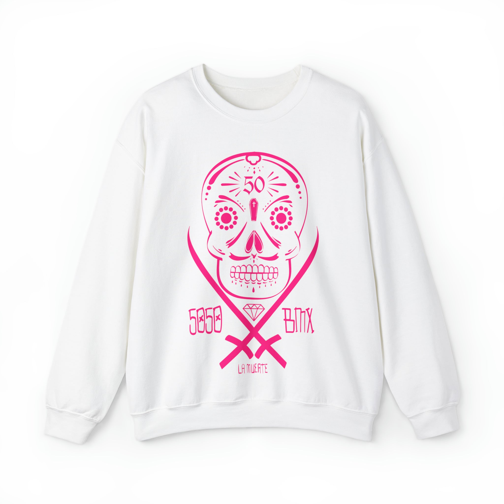 5050bmx La Muerte Skull Crewneck Sweatshirt (Neon Pink)