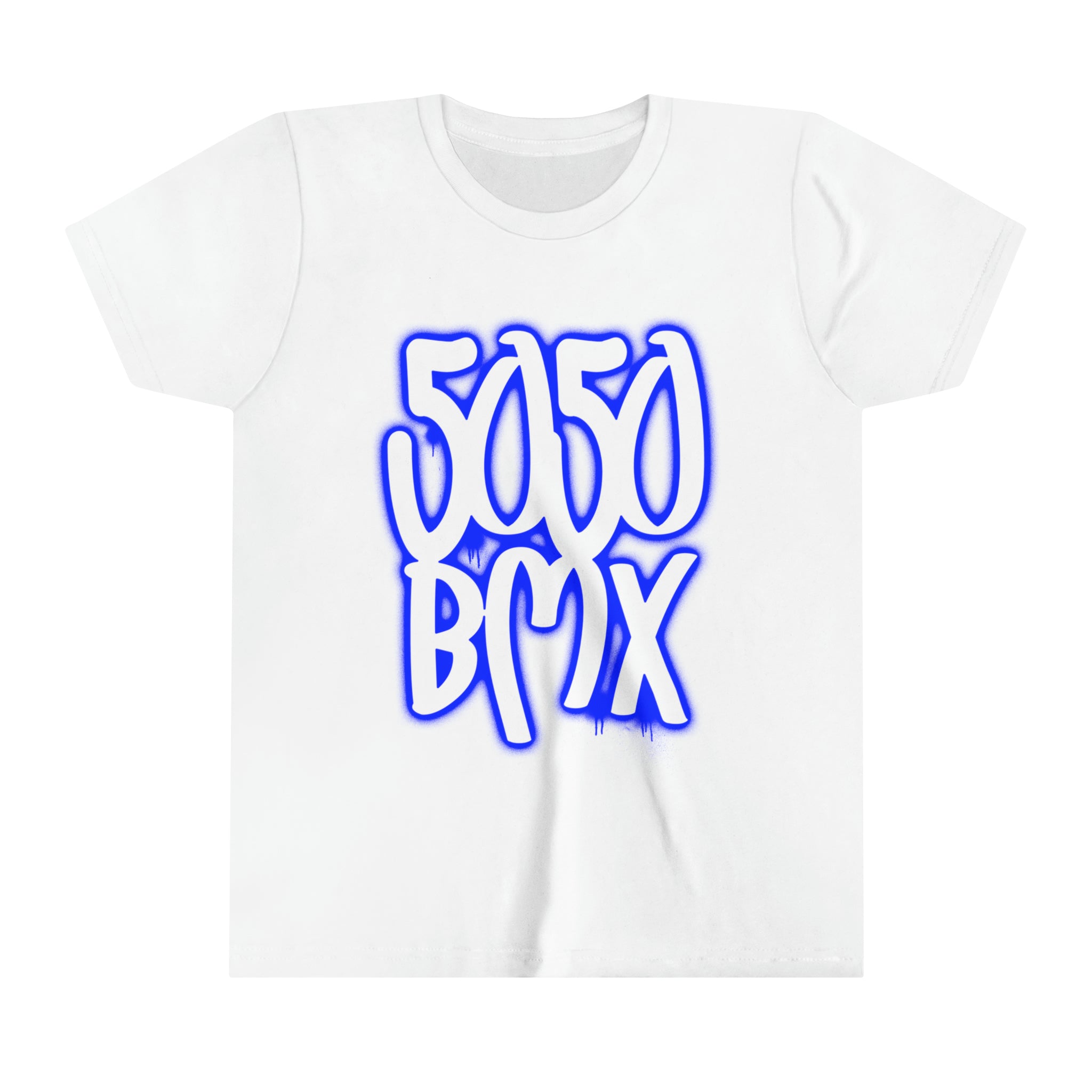 Introducing the 5050bmx.com Blue Graffiti - Youth Short Sleeve Tee – the raddest option for adventure-seekers. It's made of comfy 100% Airlume combed and ring-spun cotton. Tailored to perfection, including a tear-away label, side-seamed stitching, and shoulder taping, this tee not only looks good but performs well. Sustainably crafted in sizes S to XL – upgrade your wardrobe and take your adventuring to a new level! Let's get wild!