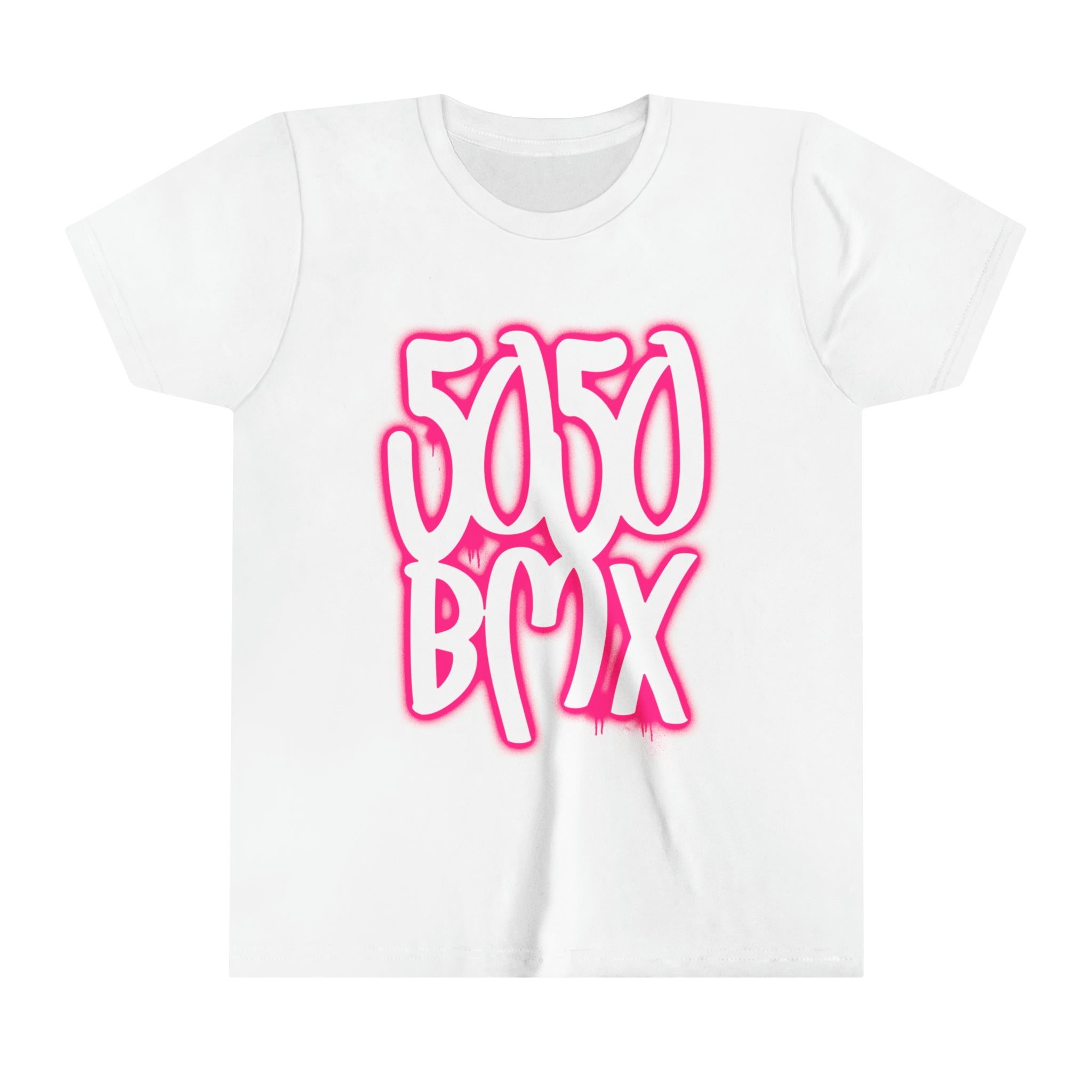 Introducing the 5050bmx.com Pink Graffiti - Youth Short Sleeve Tee – the raddest option for adventure-seekers. It's made of comfy 100% Airlume combed and ring-spun cotton. Tailored to perfection, including a tear-away label, side-seamed stitching, and shoulder taping, this tee not only looks good but performs well. Sustainably crafted in sizes S to XL – upgrade your wardrobe and take your adventuring to a new level! Let's get wild!