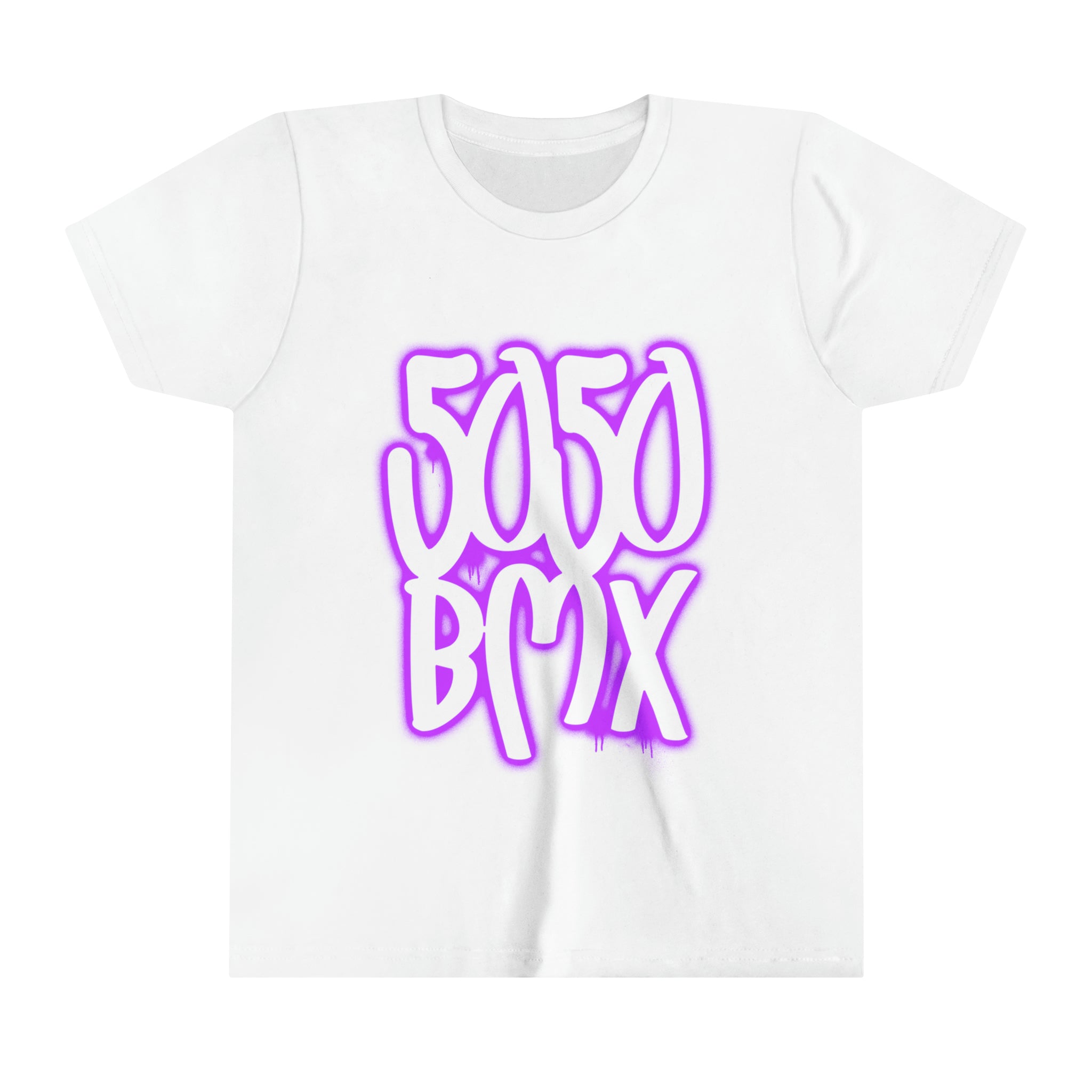 Introducing the 5050bmx.com Purple Graffiti - Youth Short Sleeve Tee – the raddest option for adventure-seekers. It's made of comfy 100% Airlume combed and ring-spun cotton. Tailored to perfection, including a tear-away label, side-seamed stitching, and shoulder taping, this tee not only looks good but performs well. Sustainably crafted in sizes S to XL – upgrade your wardrobe and take your adventuring to a new level! Let's get wild!