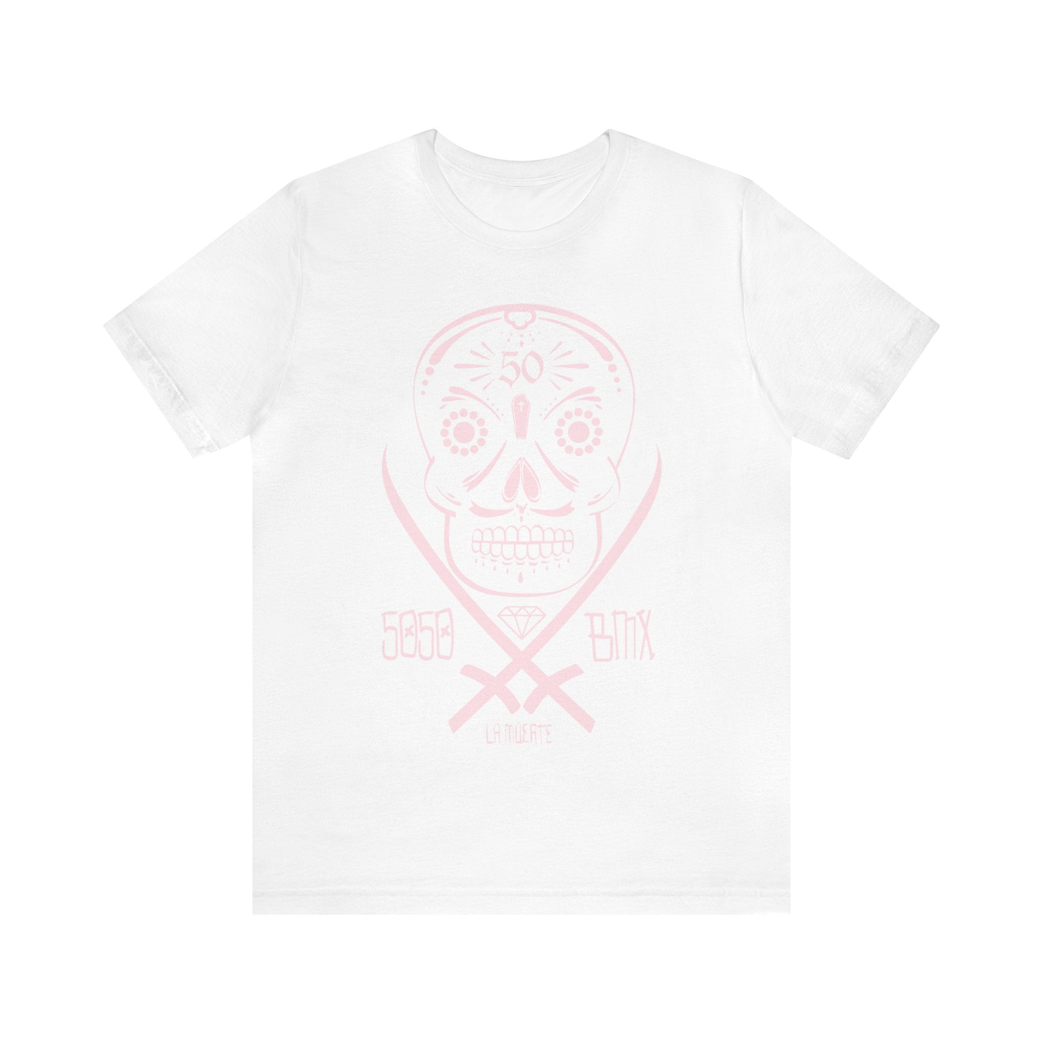 Introducing the 5050bmx La Muerte Skull - Short Sleeve Tee – your go-to choice for high-performance action sports style. It's crafted from luxurious 100% Airlume combed and ring-spun cotton for optimal comfort, and designed with a tailored fit, side-seamed stitching, and shoulder taping. Plus, it's sustainably made and comes in sizes S to 4XL – so you can make a statement and stay comfortable. Join the 5050BMX community, elevate your wardrobe, and turn heads as you ride in style!