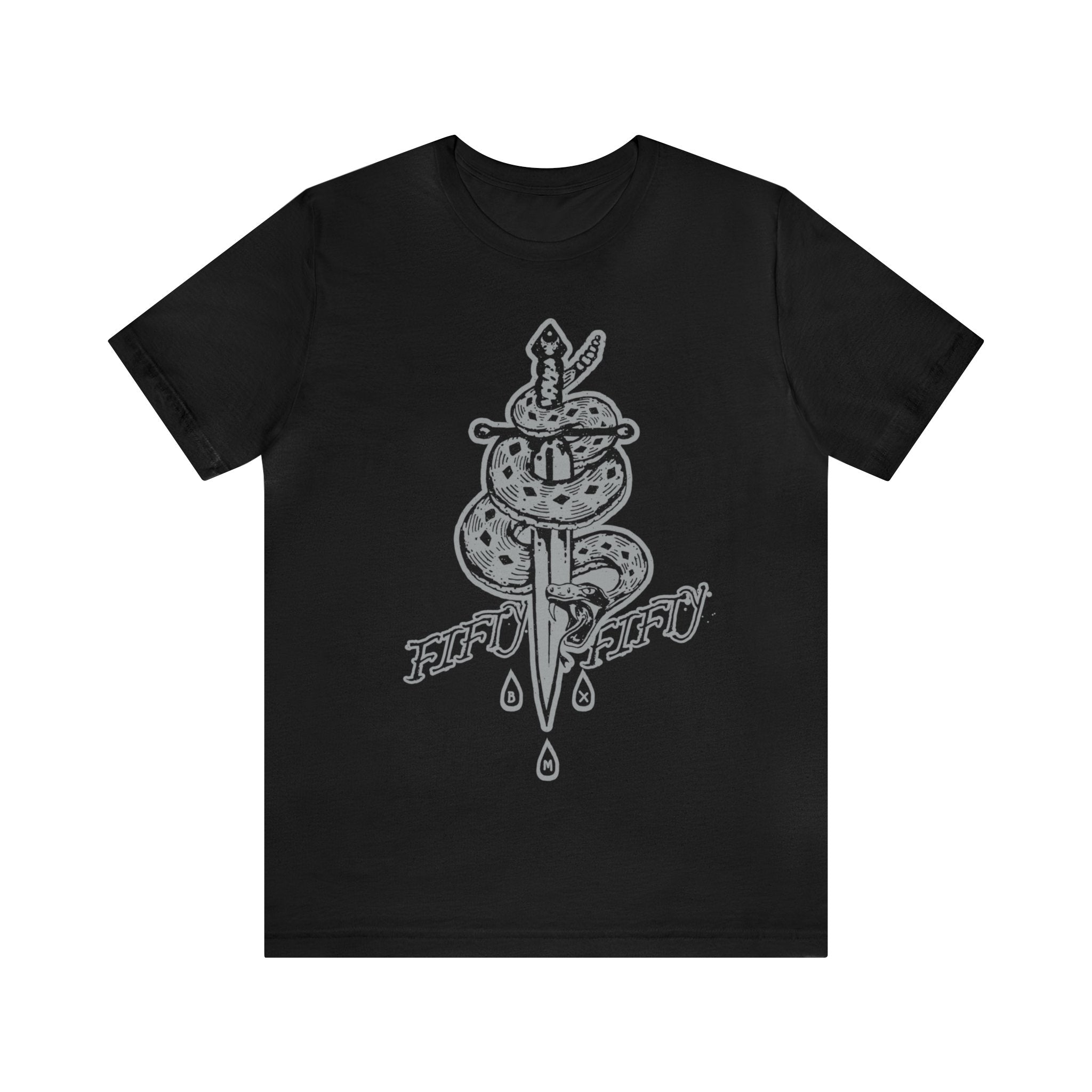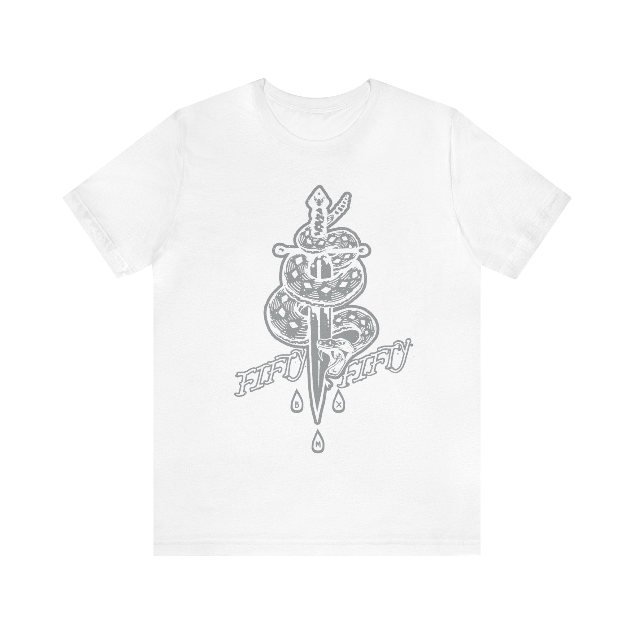 Experience the 5050bmx.com La Muerte Snake Dagger Short Sleeve Tee – (Front Print) the ultimate choice for action sports enthusiasts. Crafted from 100% Airlume combed and ring-spun cotton, this tee offers unmatched comfort. With a tailored fit, side-seamed stitching, and shoulder taping, it's designed for style and performance. Plus, it's sustainably made and available in various sizes from S to 4XL. Join the 5050BMX community, upgrade your wardrobe, and ride in style!