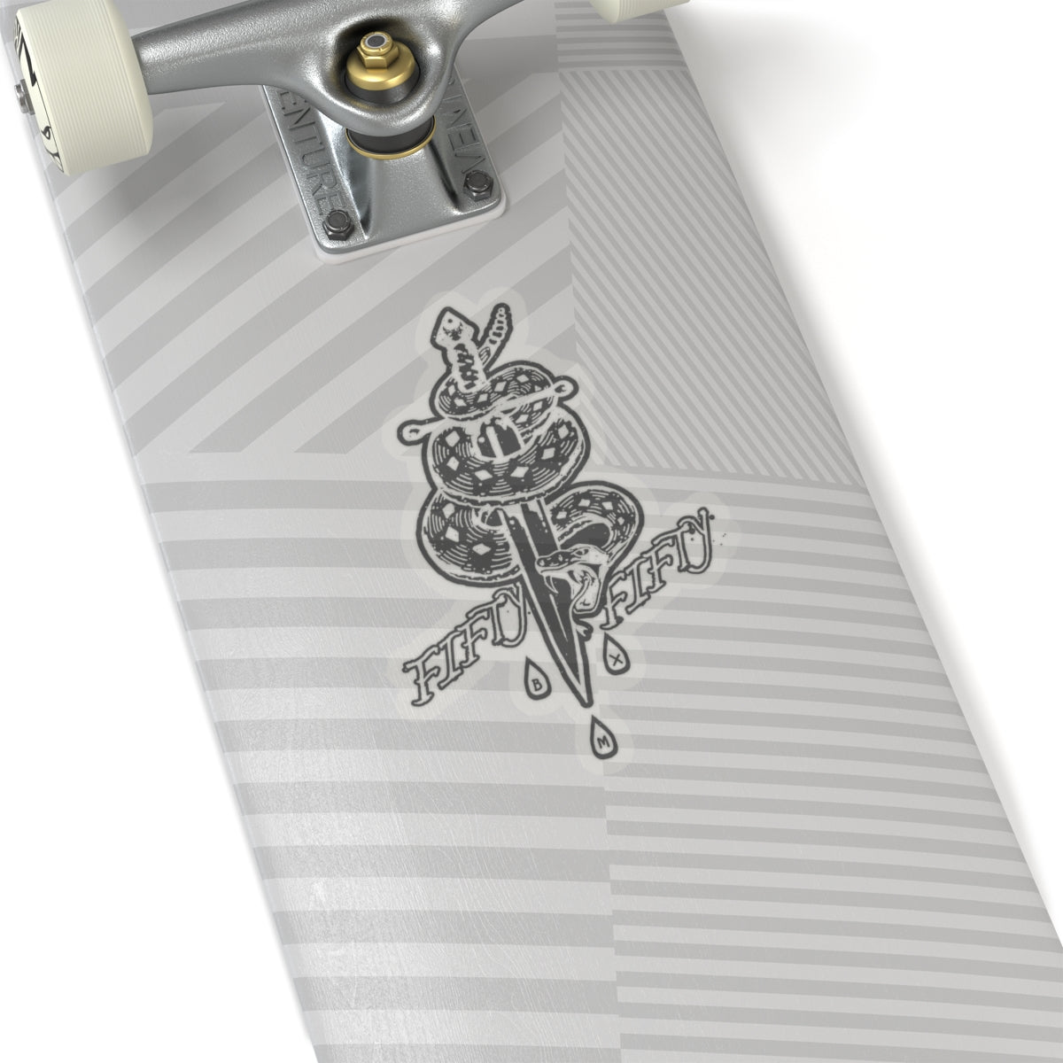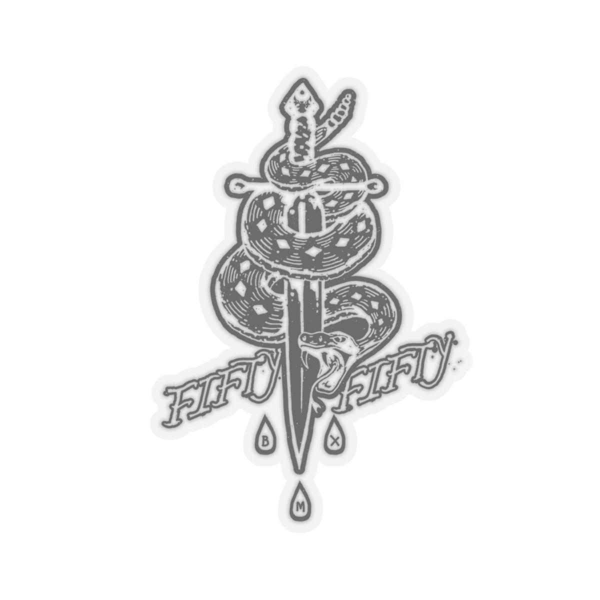 This 5050bmx La Muerte Snake Dagger sticker comes in 2 different styles: Transparent and with a white background. (check out the photos if you're curious how it will look when applied)