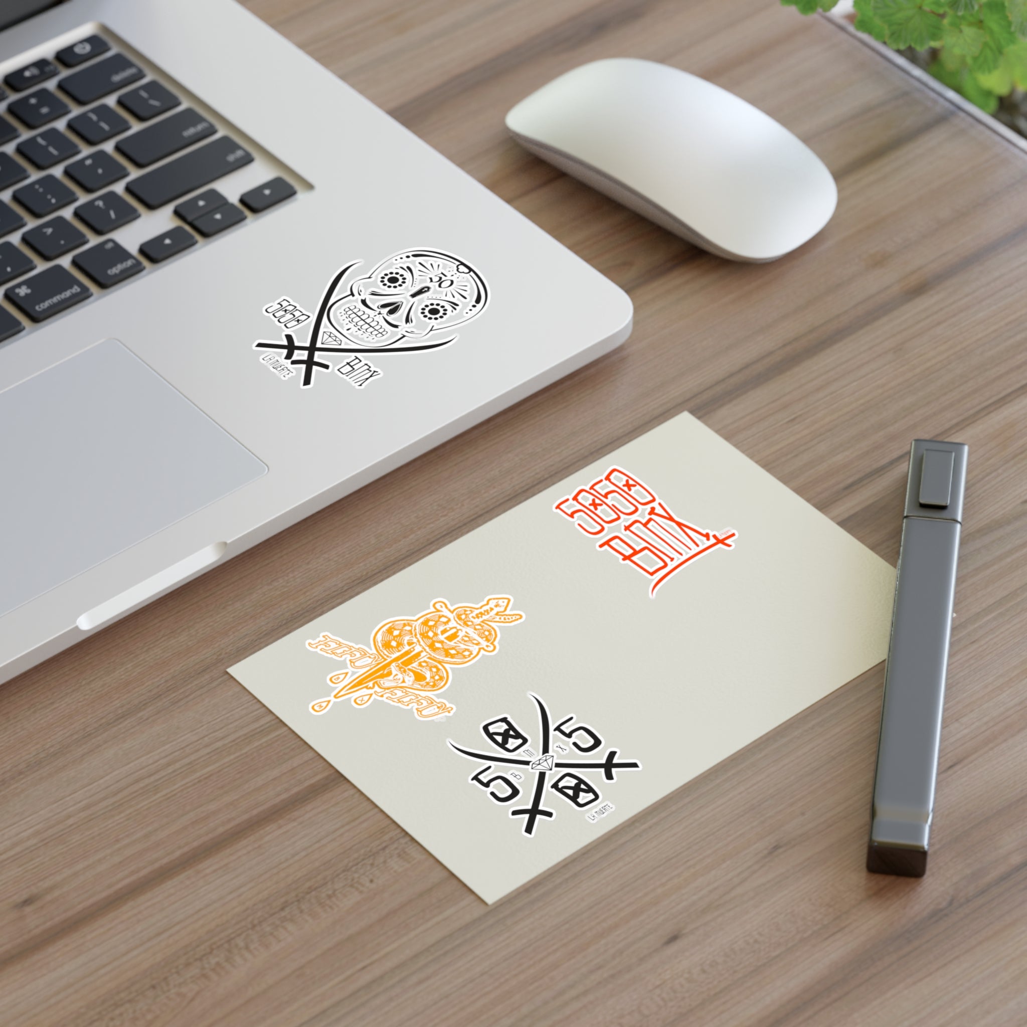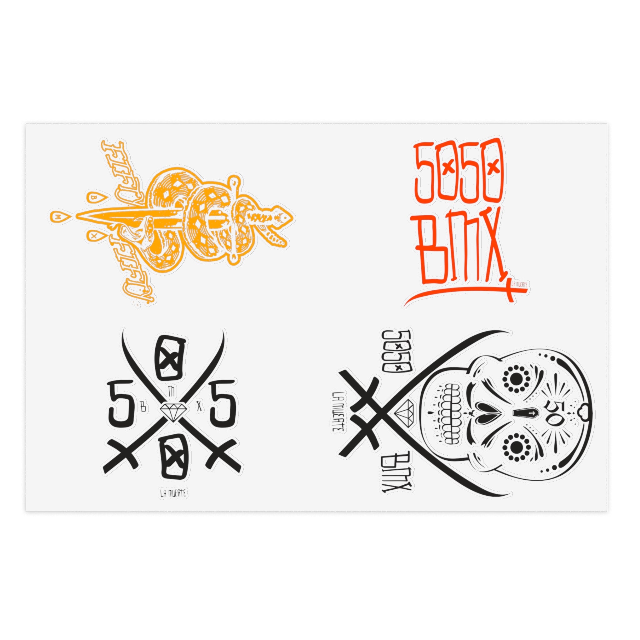 Our 5050bmx La Muerte vinyl sticker sheet gives you the perfect size die-cut art to place anywhere.
