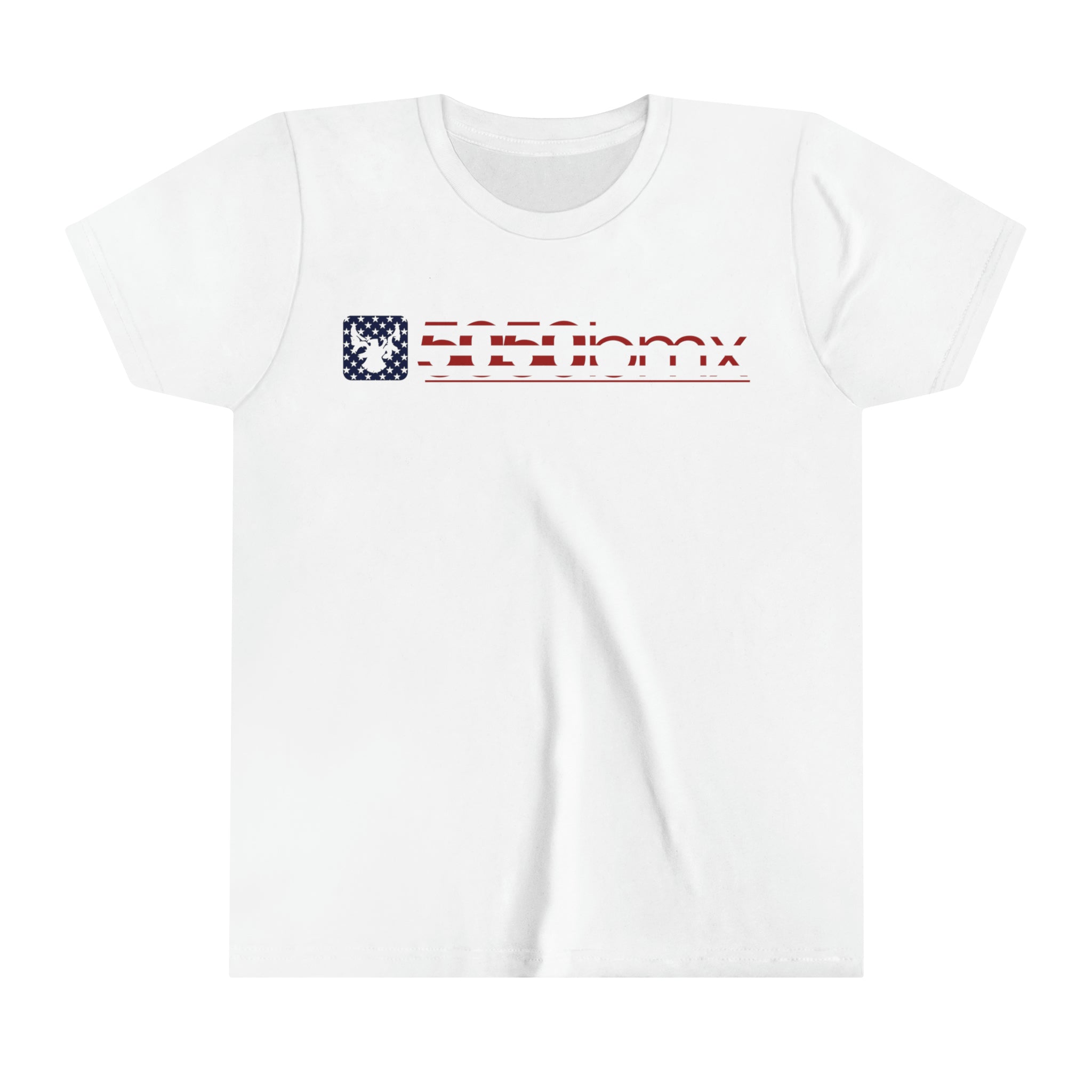 Introducing the 5050bmx.com Patriotic - Youth Short Sleeve Tee – the raddest option for adventure-seekers. It's made of comfy 100% Airlume combed and ring-spun cotton. Tailored to perfection, including a tear-away label, side-seamed stitching, and shoulder taping, this tee not only looks good but performs well. Sustainably crafted in sizes S to XL – upgrade your wardrobe and take your adventuring to a new level! Let's get wild!