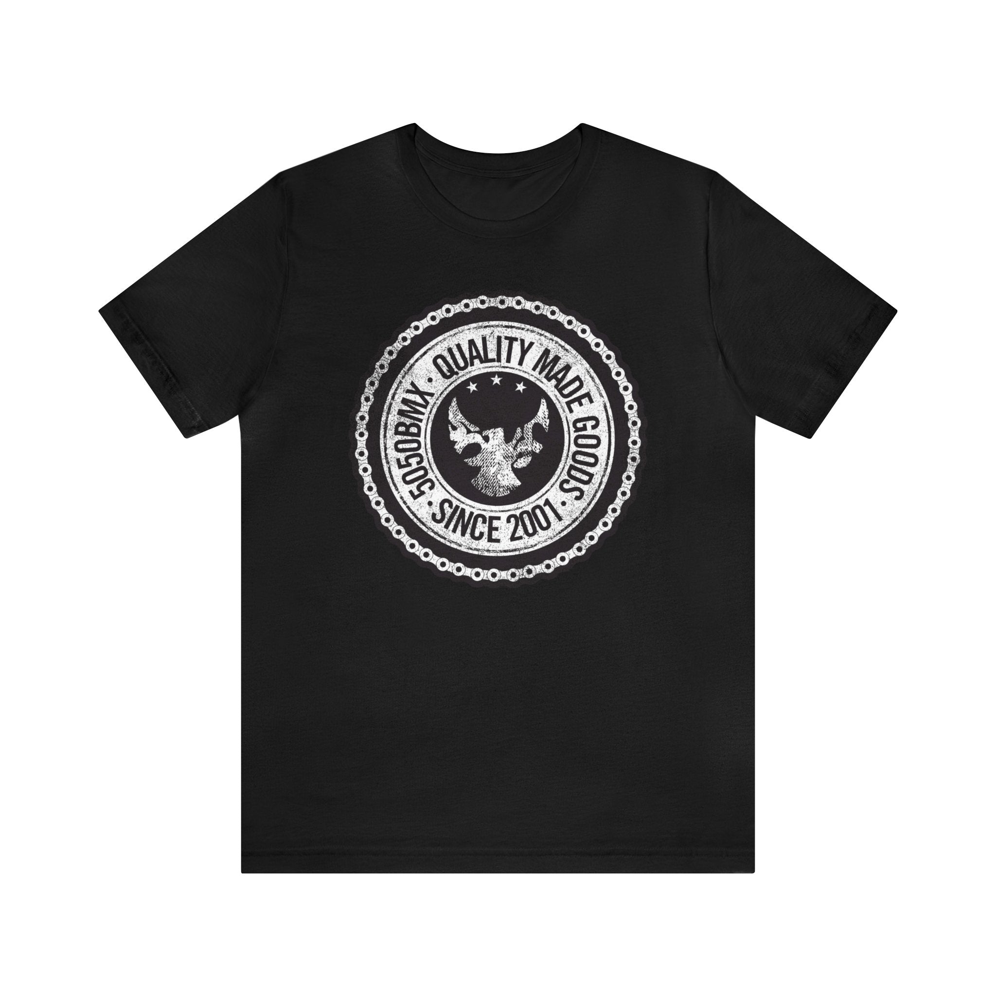 The 5050bmx Quality Made Goods' Chain Tee – A must-have for all extreme sport lovers! Made from 100% Airlume cotton, this tee offers superior comfort and stylishness. With its tailored fit, tear-away label, side-seaming, and shoulder taping, you can be sure it will keep up with you through even the wildest of rides. Plus, it's sustainably made and comes in sizes S thru 4XL! So hop on board with 5050BMX – they've got everything you need from swaggy gear to trendy apparel. Whether you're a pro or just starting out – they've got you covered!