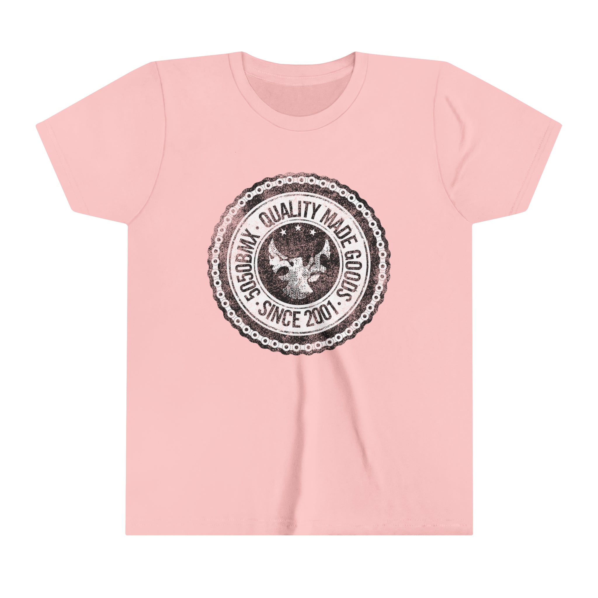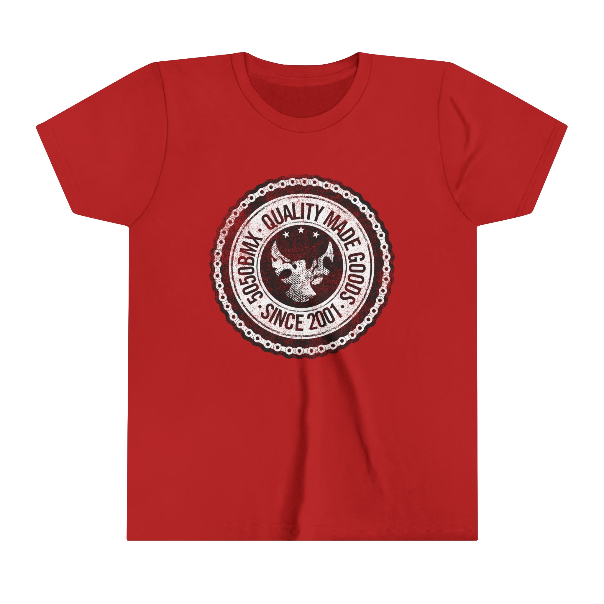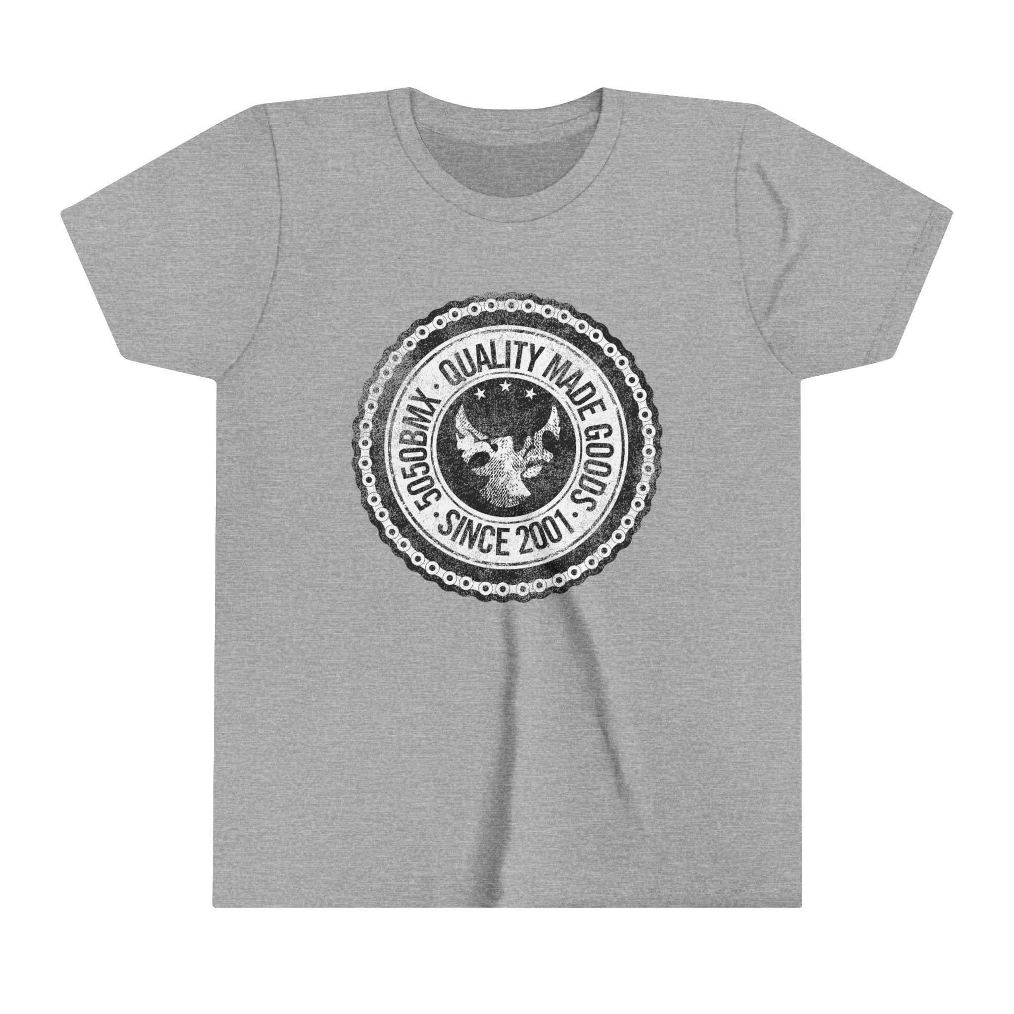 Introducing the 5050bmx.com Quality Made Goods - Youth Short Sleeve Tee – the raddest option for adventure-seekers. It's made of comfy 100% Airlume combed and ring-spun cotton. Tailored to perfection, including a tear-away label, side-seamed stitching, and shoulder taping, this tee not only looks good but performs well. Sustainably crafted in sizes S to XL – upgrade your wardrobe and take your adventuring to a new level! Let's get wild!