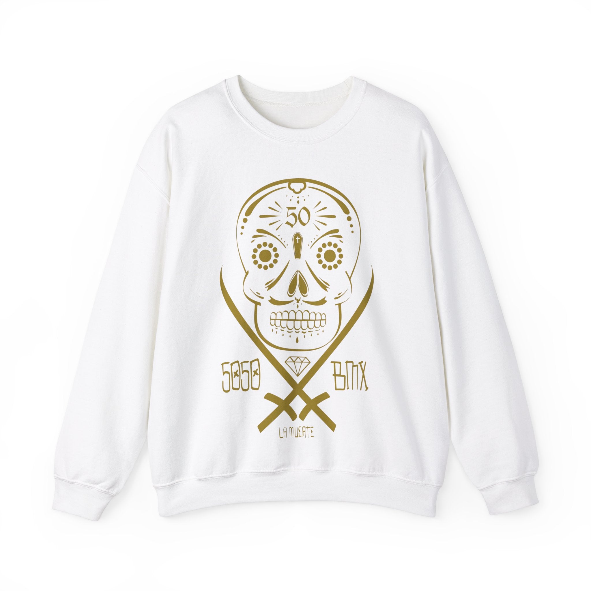 Experience the unparalleled combination of comfort and performance with the 5050BMX La Muerte Skull Sweatshirt! Our crewneck is uniquely crafted for action sports aficionados and made from a blend of 50% cotton and 50% polyester fabric. Enjoy its breathability, fast-drying qualities, and resilient construction – unleash your spirit today!