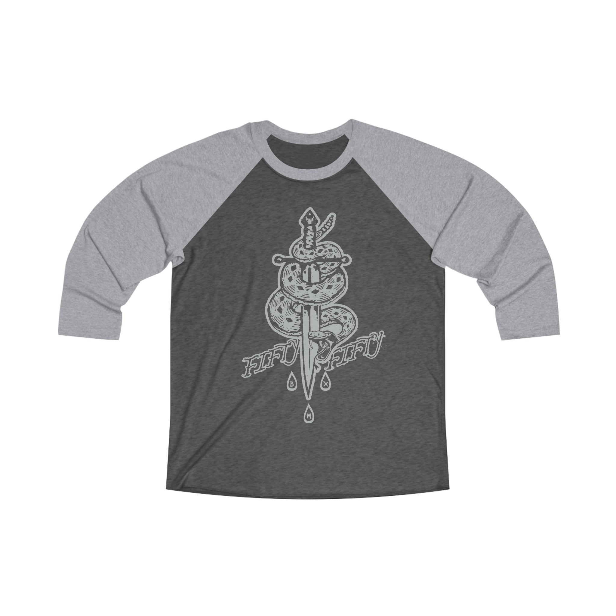 At 5050BMX.com, we understand that action sports enthusiasts like you demand more than just a shirt; you crave the perfect blend of design and fit. Our 5050bmx Snake Dagger Unisex 3/4 Raglan Tee is a home run in both style and comfort.