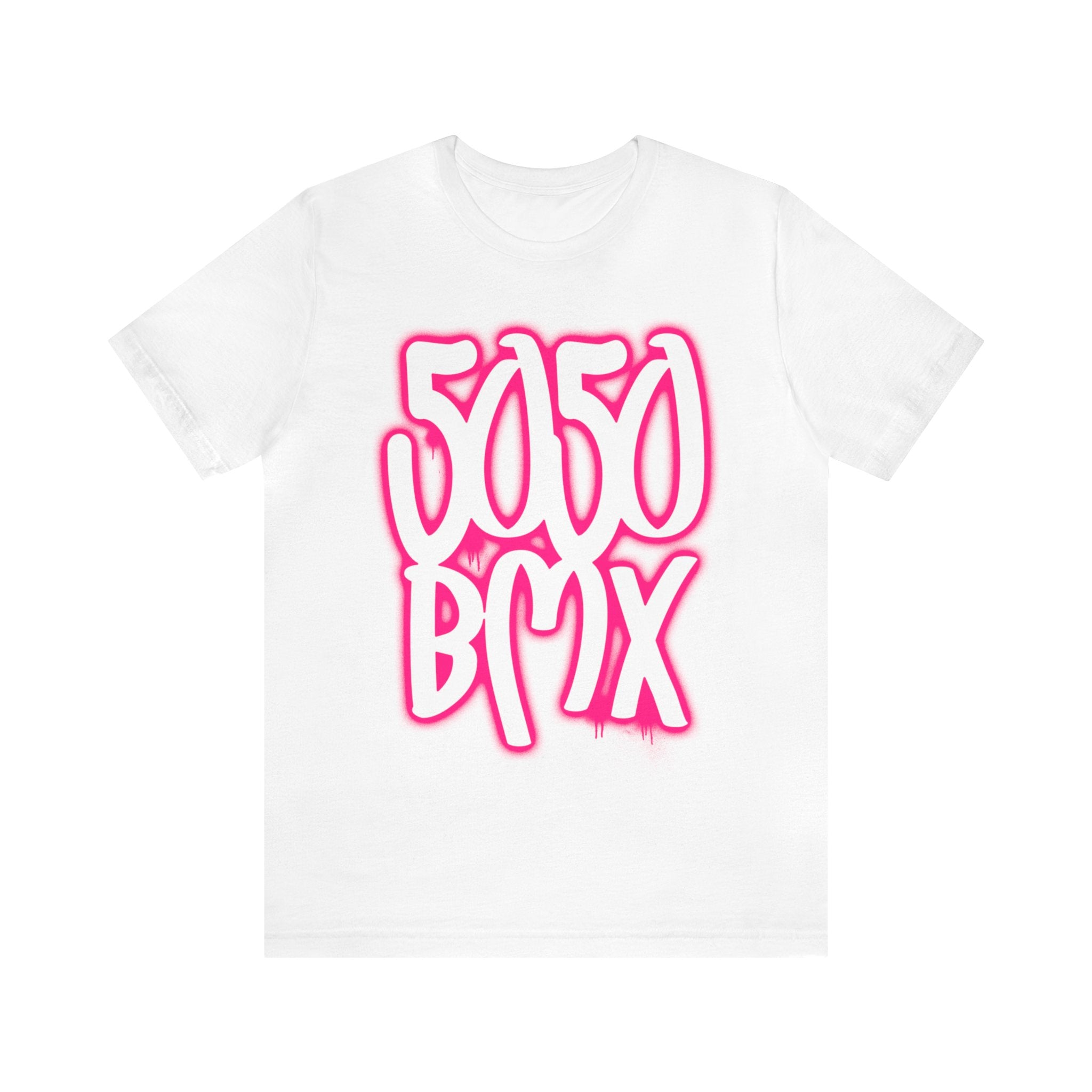 Introducing the 5050bmx.com Pink Graffiti - Short Sleeve Tee – the raddest option for adventure-seekers. It's made of comfy 100% Airlume combed and ring-spun cotton. Tailored to perfection, including a tear-away label, side-seamed stitching, and shoulder taping, this tee not only looks good but performs well. Sustainably crafted in sizes S to 4XL – upgrade your wardrobe and take your adventuring to a new level! Let's get wild!