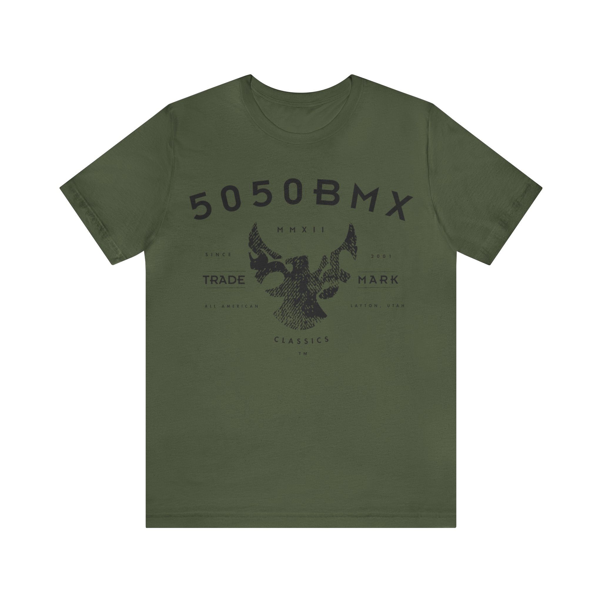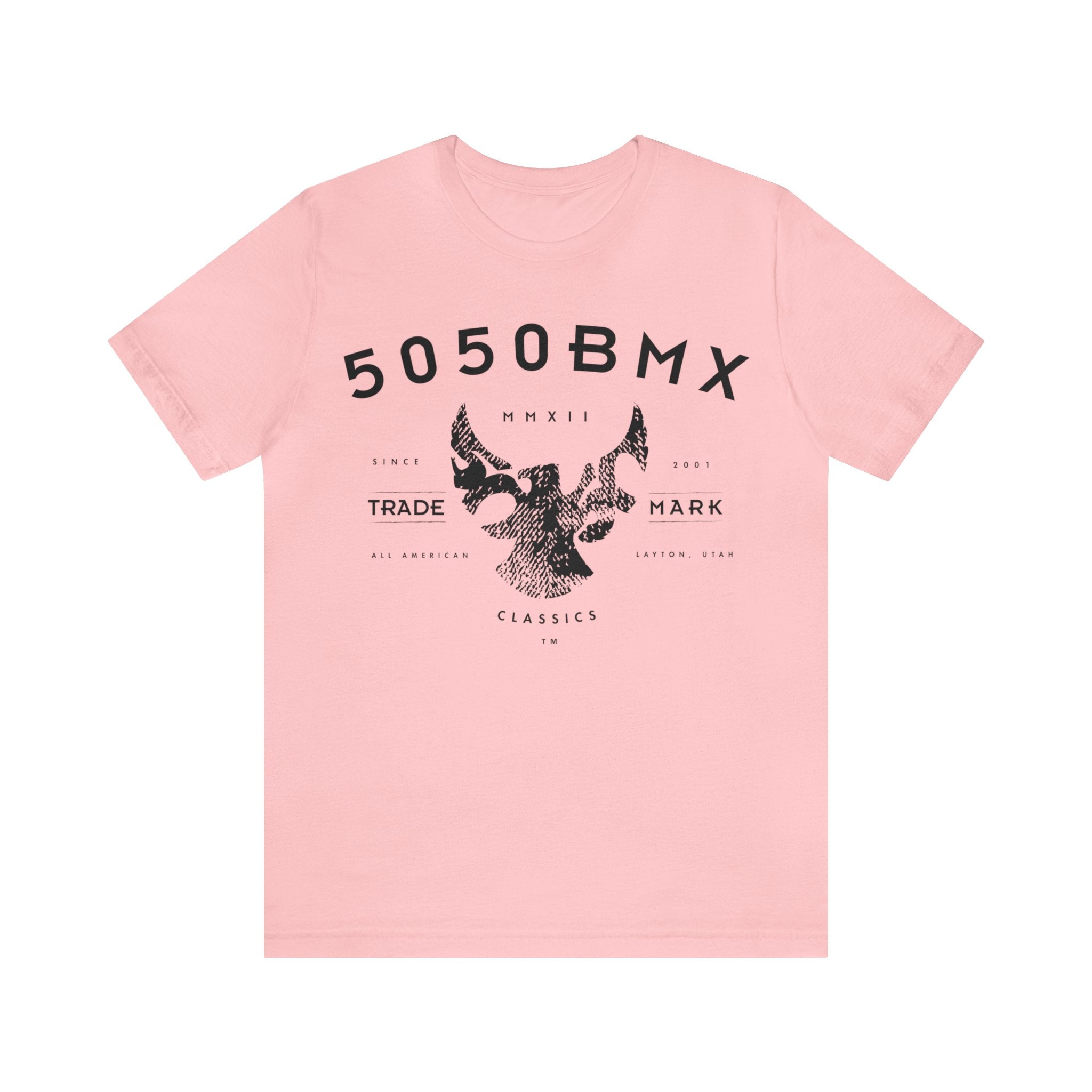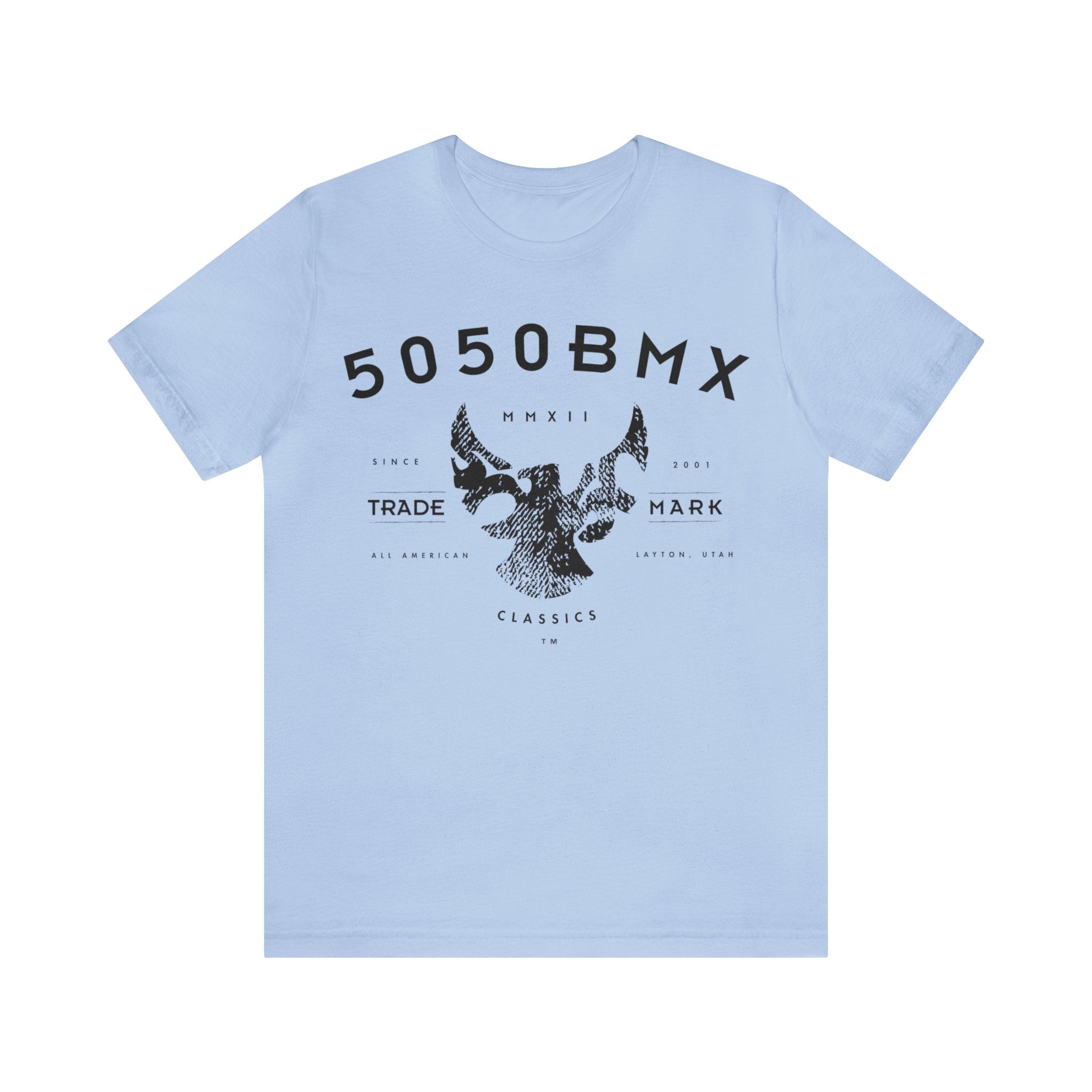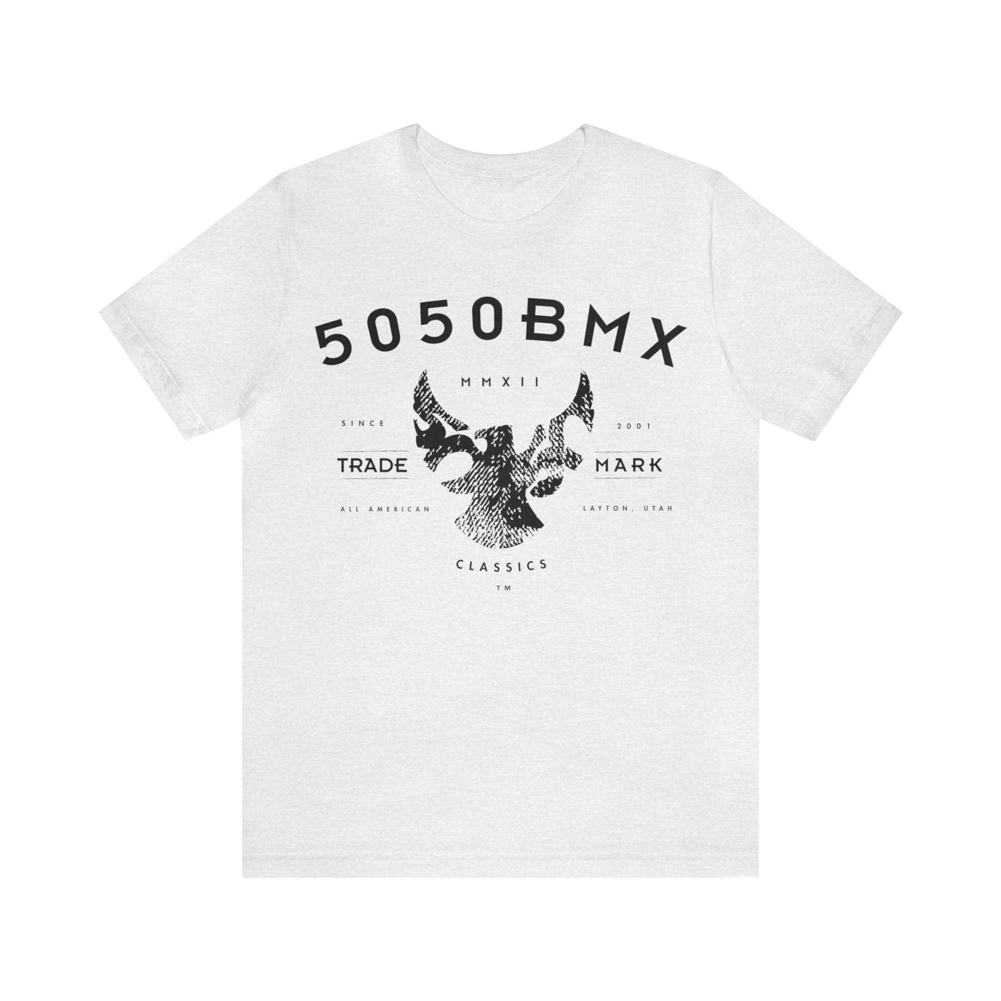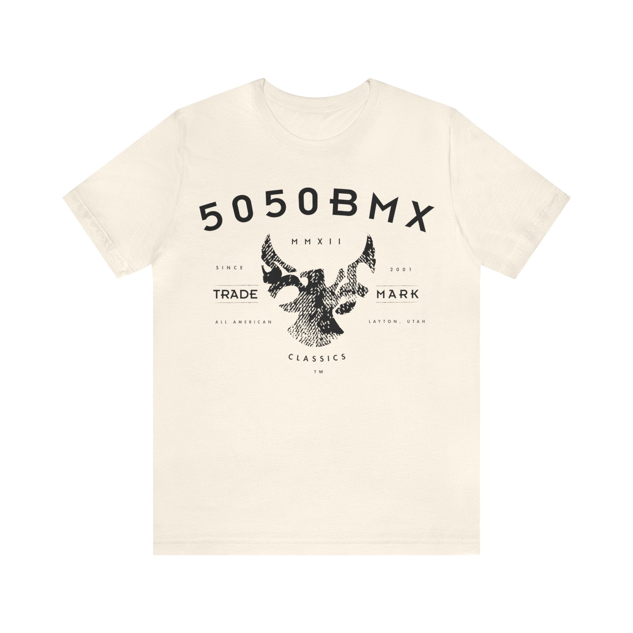 The 5050bmx Trademark Tee is here to revamp your action sports wardrobe! Crafted from the comfiest 100% Airlume combed and ring-spun cotton, it's got the right fit, tear-away label, and shoulder taping to keep you stylin' while you ride. Plus, it's sustainably made and available in S to 4XL - join the 5050BMX fam and get ready to ride in style!