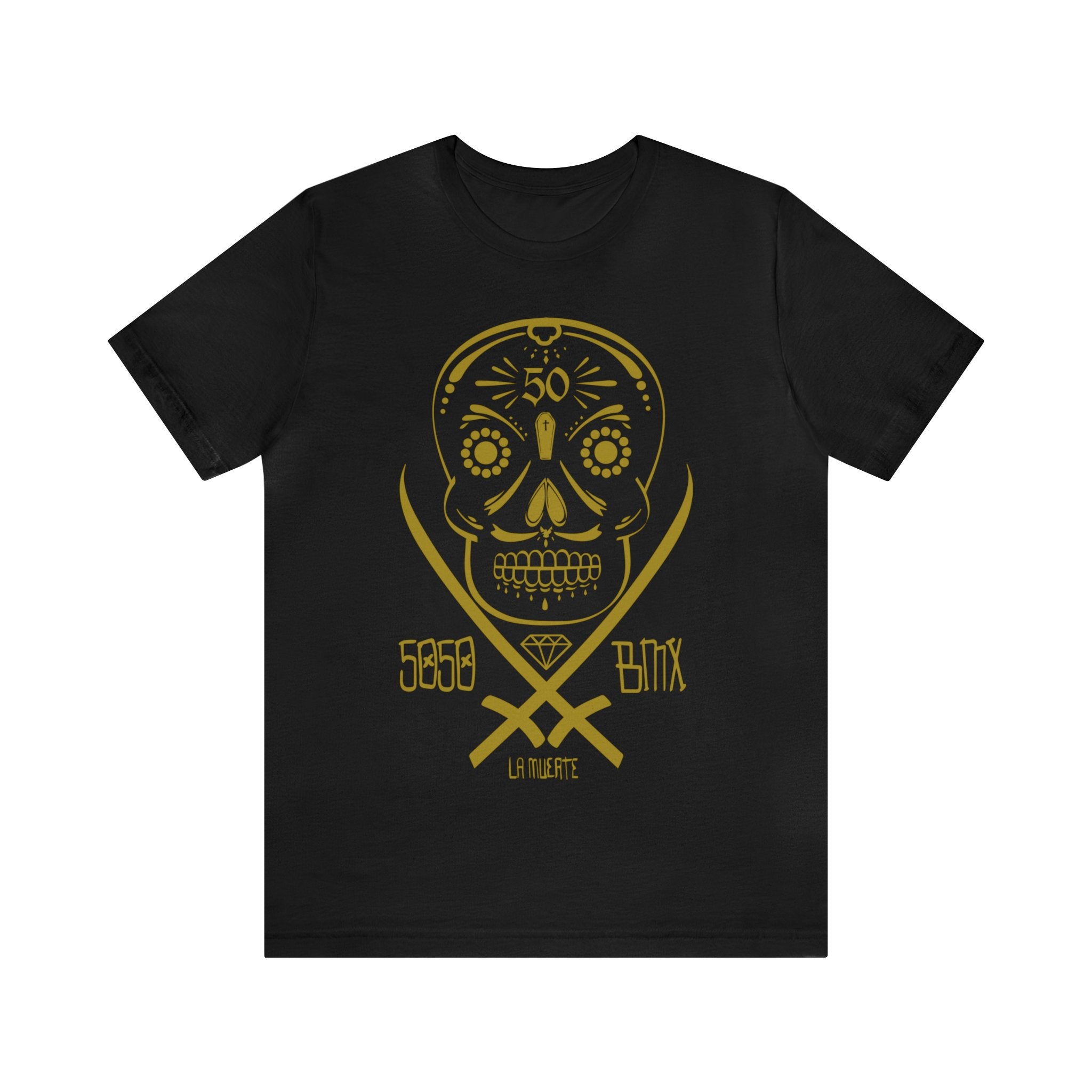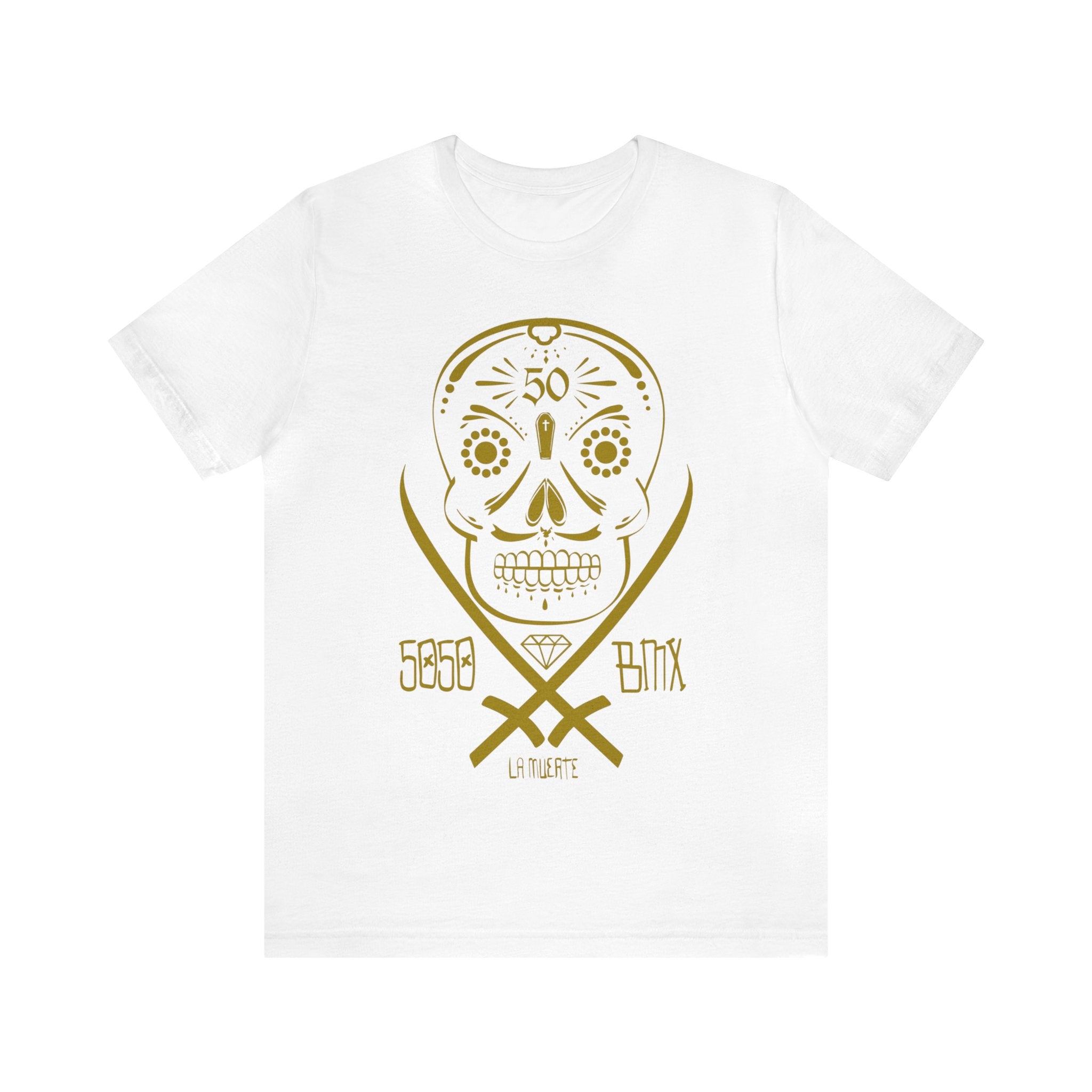 Experience the power of 5050bmx.com with the La Muerte Skull Short Sleeve Tee. Crafted with 100% Airlume combed and ring-spun cotton, this tailored fit provides superior comfort and style. Side-seamed stitching, shoulder taping, and a range of sizes from S to 4XL make this the perfect choice for extreme sports fanatics. Become a part of the exclusive 5050BMX family, look your best, and ride with confidence!